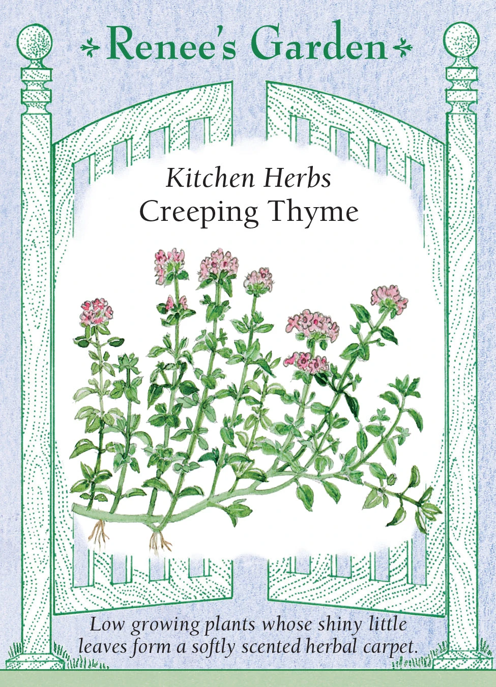 Given good drainage and a sunny location, easy-growing creeping thyme plants are reliable and productive garden perennials. Be sure to thin or transplant seedlings to proper spacing and keep weed free; plants will fill out and spread once well established. Little lavender-rose flowers bloom atop the shiny dense leaves at midsummer.