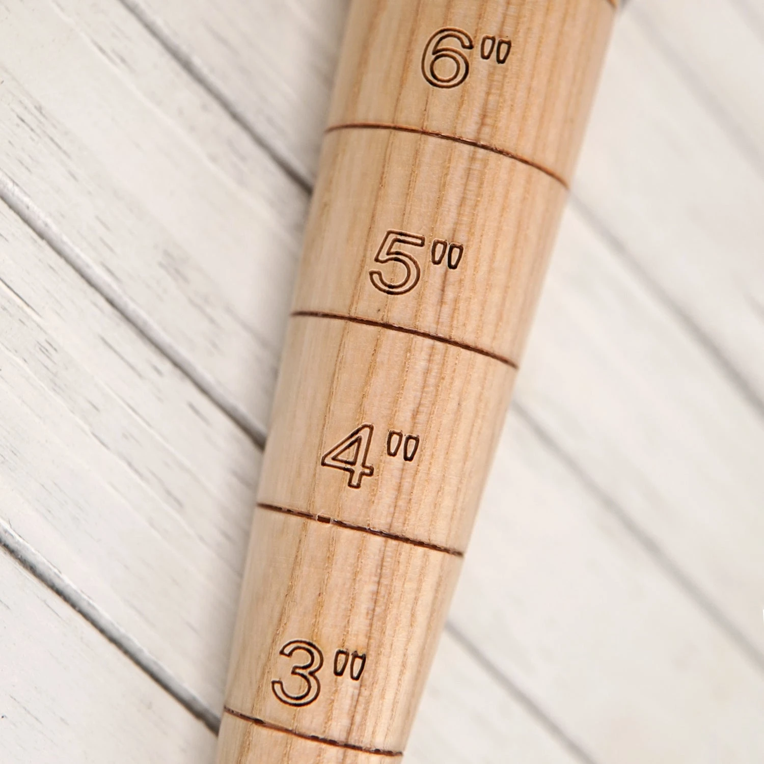 Whether you’re sowing seeds, planting garlic, or setting flower bulbs in the ground, this wooden dibber makes the work quick and precise. Constructed of solid ash with a sharp, brass tip, the dibber opens holes in the soil with a quick, press-and-spin motion. The tapered body makes proportionally wider holes with deeper depths, and engraved inch markings assure accurate planting. Overall length: 12 inches.