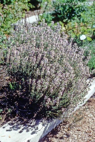 Given a sunny location with good drainage, easy-growing thyme plants are reliable productive and long-lived garden perennials. Little lilac flowers bloom in midsummer; cut back foliage halfway when the blossoms fade to keep plants looking fresh. Cut leafy thyme sprigs as needed once plants are well established.