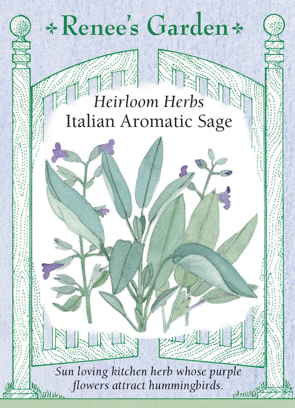Sun-loving sage’s soft gray-green leaves blend handsomely with all other plants, and its pretty light purple flower sprays attract constant attention from hummingbirds. In the kitchen, you’ll find fresh sage has a warm complex flavor that enhances vegetables like onions, beans, tomatoes and potatoes, meats like pork, turkey and sausage and most cheese dishes. Bunches of leafy sage branches dry easily to enjoy year-round. This easy and ornamental Mediterranean herb belongs in every garden.