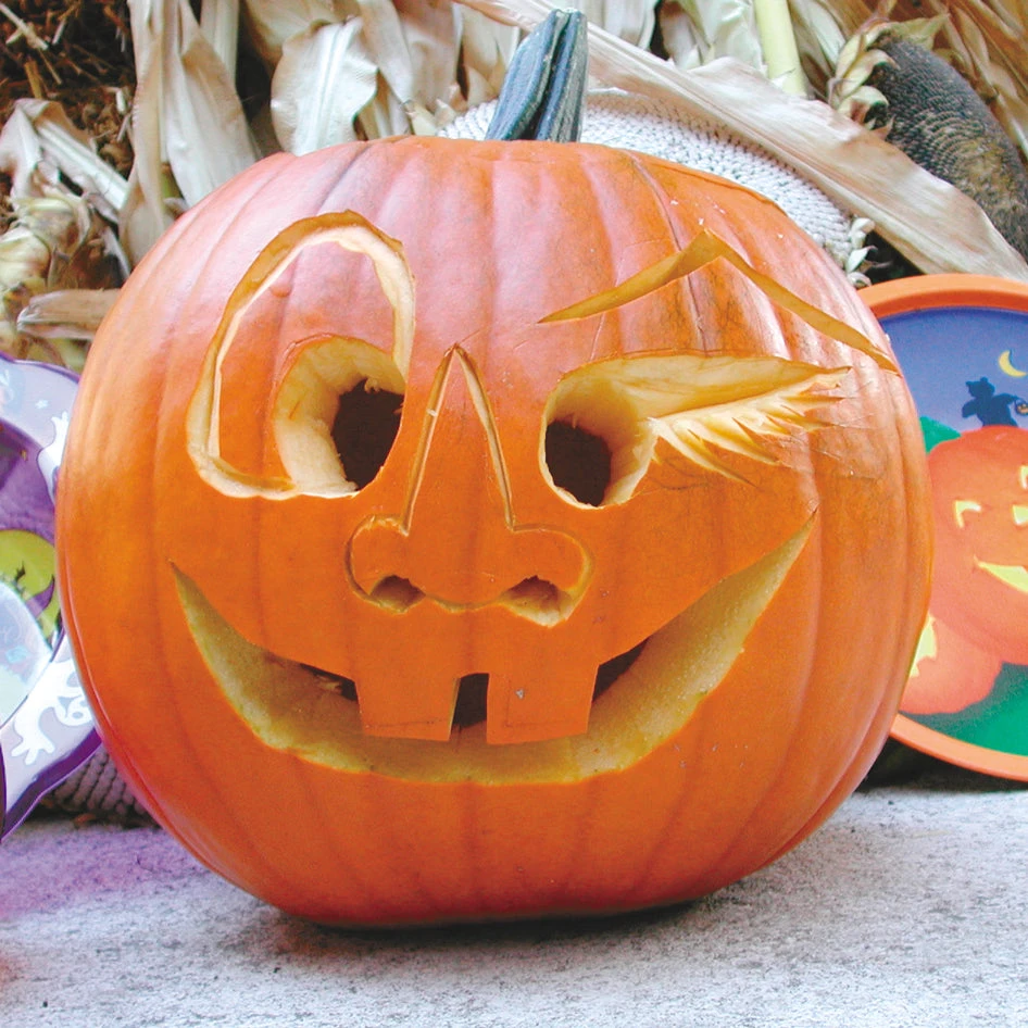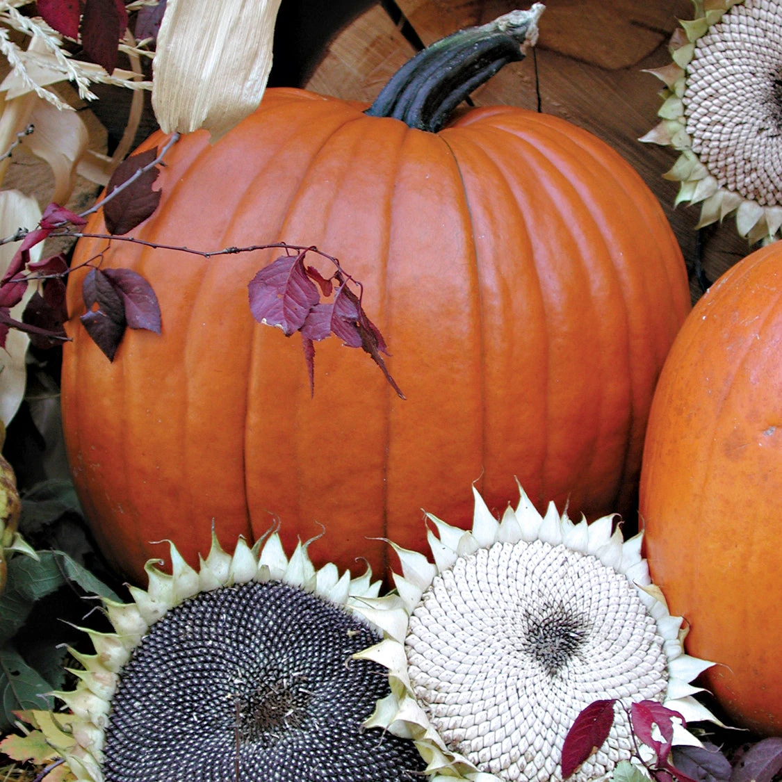 Cucurbita pepo 95 days. One of our best discoveries for Halloween pumpkins. Its heavy crown set will give you an early crop in plenty of time for Halloween. The dark orange fruit have medium ribbing, sit 16 inches tall, 12 inches wide, and weigh 16–24 pounds. The vigorous, compact vines fit well in smaller gardens. A real winner that’s just right for kid picking! Approximately 6 seeds per gram. PM.