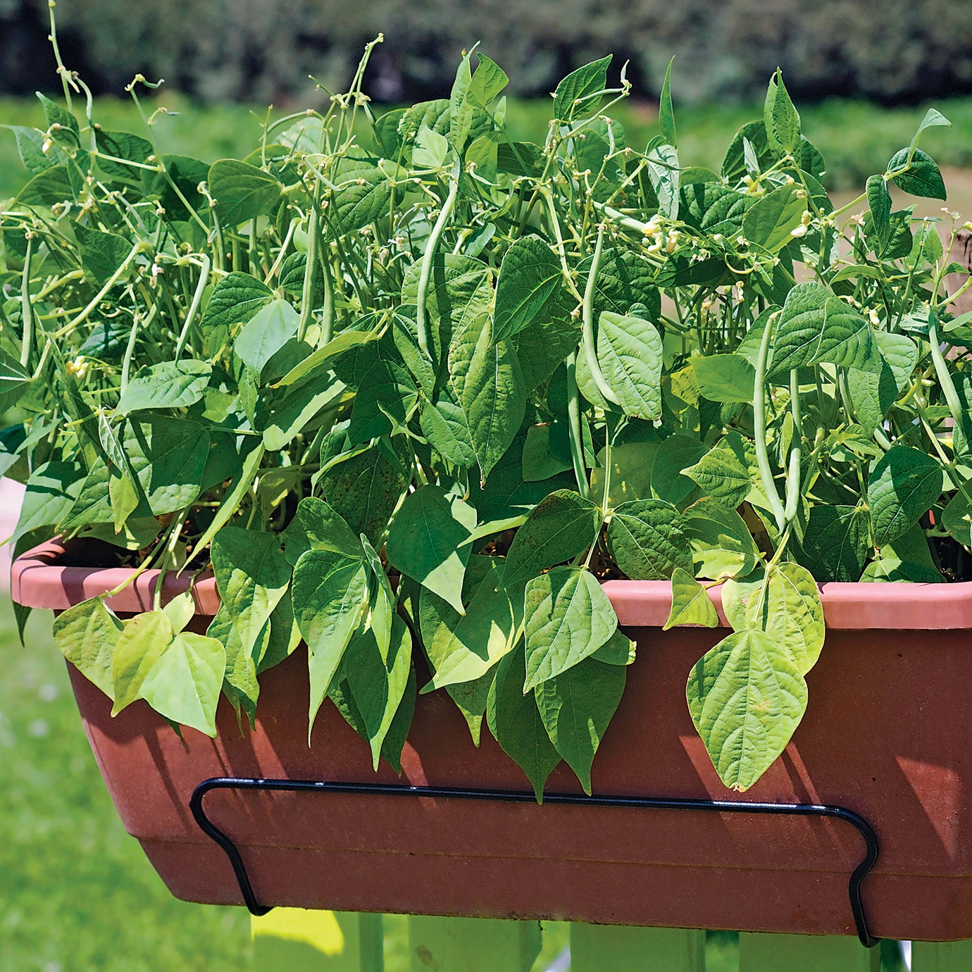 50 days. An AAS award winner for its super-compact habit and high production of delectable beans. Mascotte provides full-sized harvests from container-friendly plants. Bushy plants grow only 16–18 inches tall with big, white blooms followed by tender, stringless, tasty beans held high for easy spotting. Slender green beans keep coming over a long harvest period. White seeds; 200 per ounce. A, BMV, HB