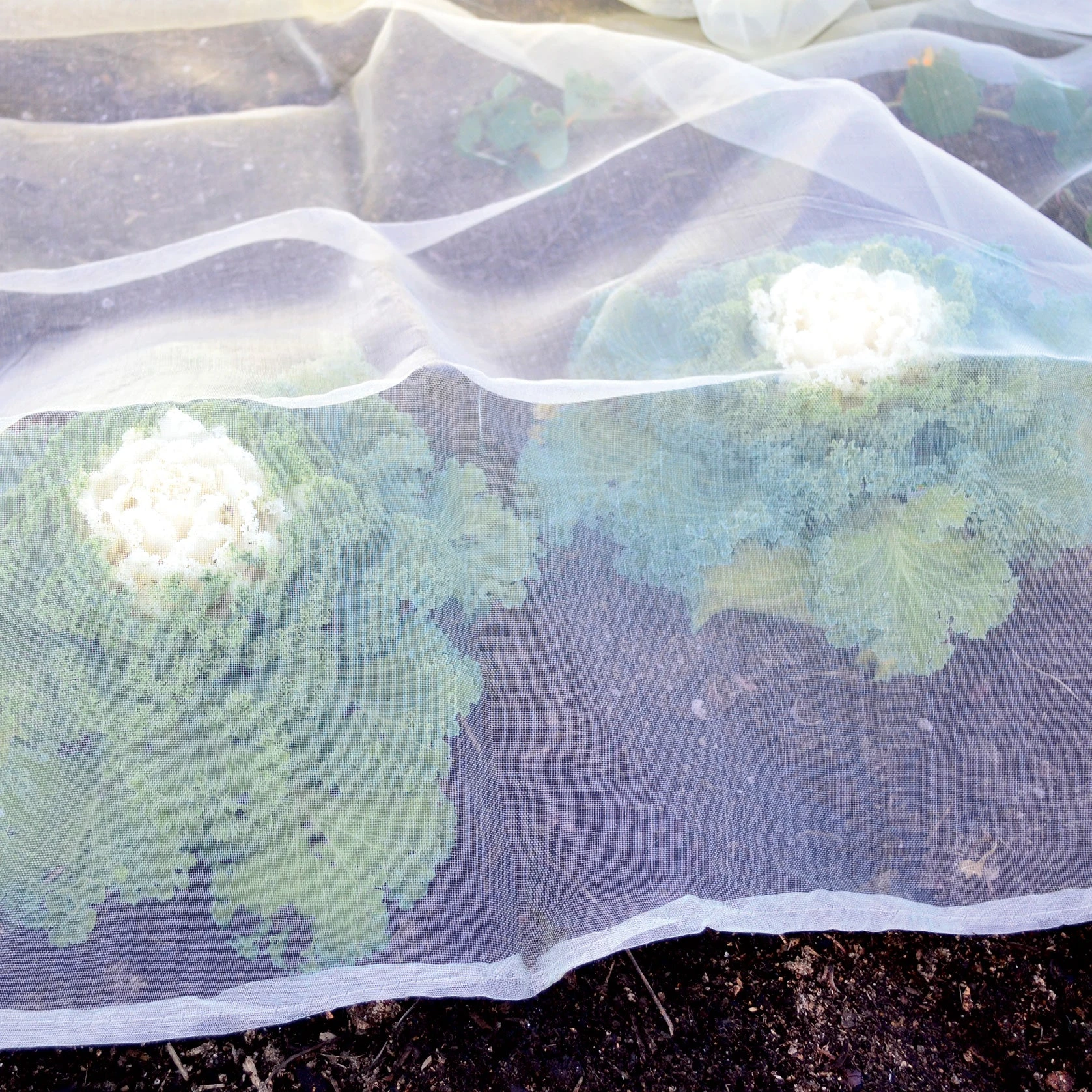 67″ x 16′. Ultra fine, 0.6 millimeter, UV stabilized floating row cover keeps out the smallest of insects. The greenish-yellow tint provides shade and retains moisture, while allowing sunlight, direct watering, and easy access to crops. Can easily be cut to fit.