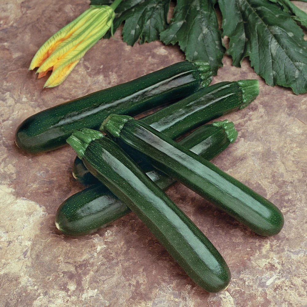Cucurbita pepo 45 days. A uniform, open bush plant that produces early-maturing zucchinis that last longer on your counter. Noche’s fruit is prime at 7–8 inches long and dark, glossy green. With vigorous growth and superior disease resistance, this zucchini is one of our favorites. WMV 1, ZYMV.