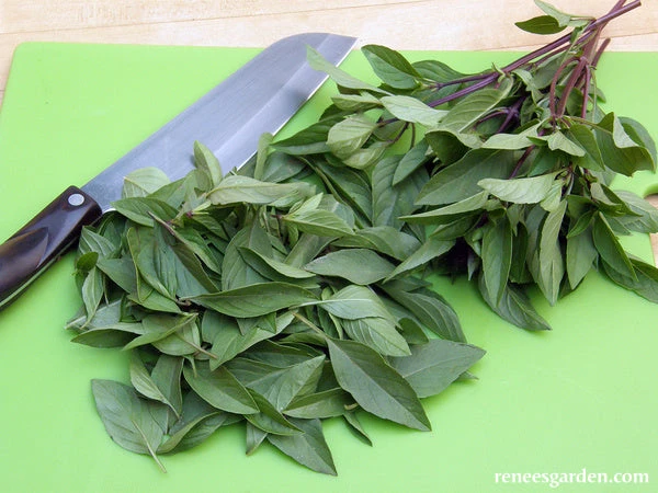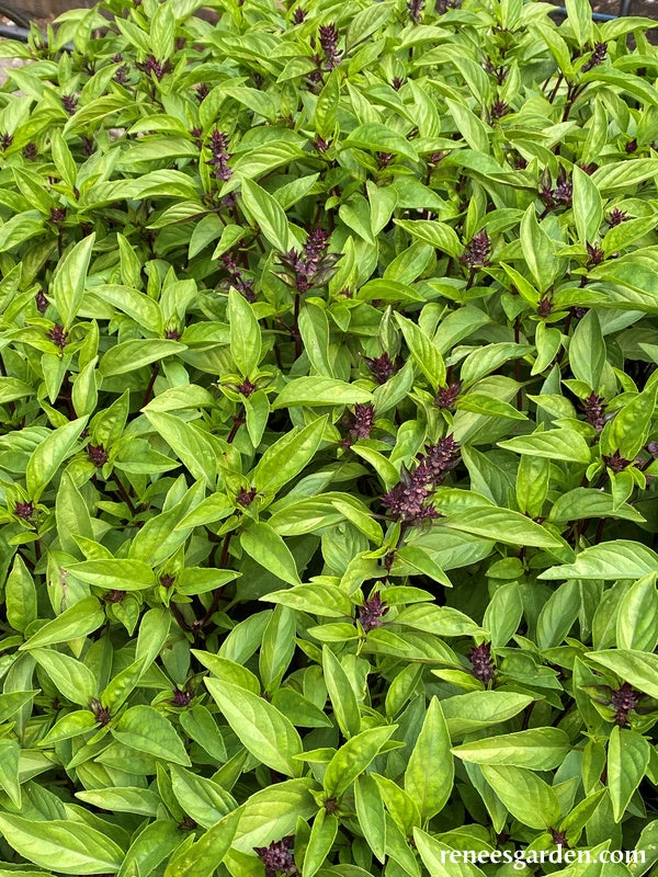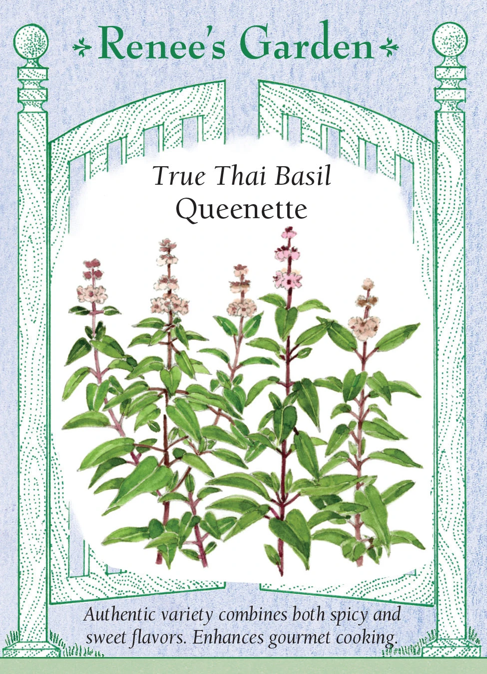 EXCLUSIVE – This tropical-looking ornamental basil has dense 1/2 inch leaves that grow in clusters around distinctive purple stems. Imported directly from our best Thai seed producer, Queenette’s exotic flavor combines aromatic mild sweet spices with clove/mint basil flavor. It is a critical ingredient in Southeast Asian dishes and marvelous in stirfries, chutneys and marinades. An eye-catching herb to interplant with flowers for “edible landscaping.” Plant Queenette basil to enjoy growing and cooking with authentic Thai ingredients.