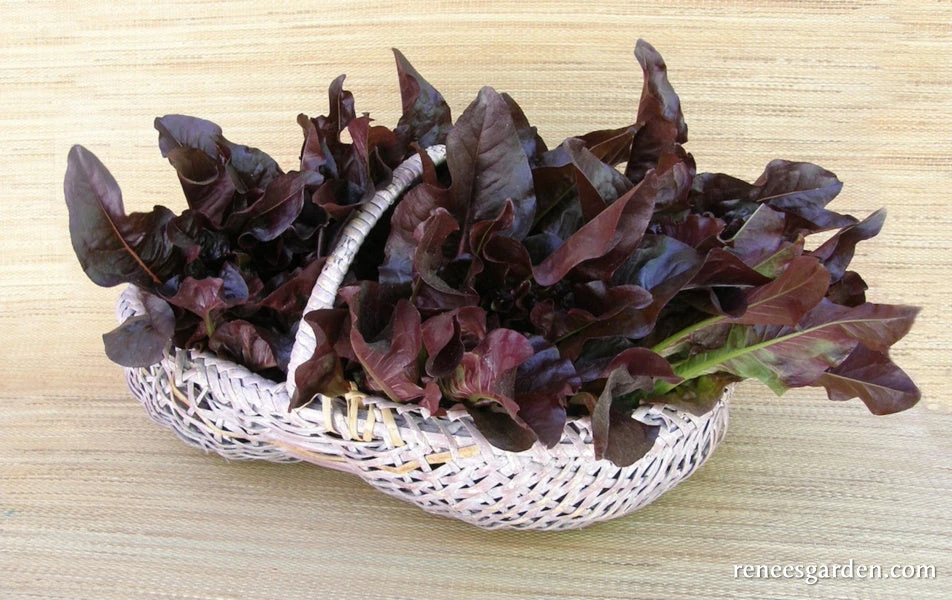 To harvest, wait until the plants form open, loose heads with leaves about 6 inches tall. Use scissors to cut leaves about 1 to 2 inches above the soil level. Water well and fertilize lightly and if weather is still cool, plants will re-grow tasty leaves for another cutting. These tasty, deep red leaves show off in the salad bowl and add interest to any sandwich. Hot summer temperatures turn this heirloom lettuce bitter; plant and harvest in cooler weather.
