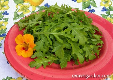 This outstanding arugula selection is distinguished by very attractive, deeply lobbed, oakleaf-shaped leaves. In our garden trials, Runway tastes deliciously tangy but is slightly less pungent than regular arugula. Peppery, sharp-flavored arugula (a.k.a. rocket or roquette), provides a wonderful punch of piquant flavor to any green salad or a scrumptious contrast tossed with fresh sliced fruit or served under meat, chicken or fish just hot off the barbecue.