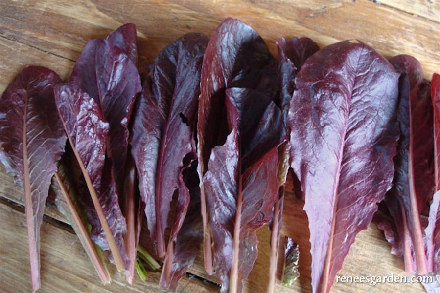 To harvest, wait until the plants form open, loose heads and are about 6 inches tall. Cut as much as you need, using scissors to shear off a patch of leaves about 1 to 2 inches above the soil level. Water well and fertilize lightly. If weather is cool, plants will re-grow for another cutting. The sword-shaped leaves with their beautiful deep red color will enhance any salad bowl and add interest to any sandwich.