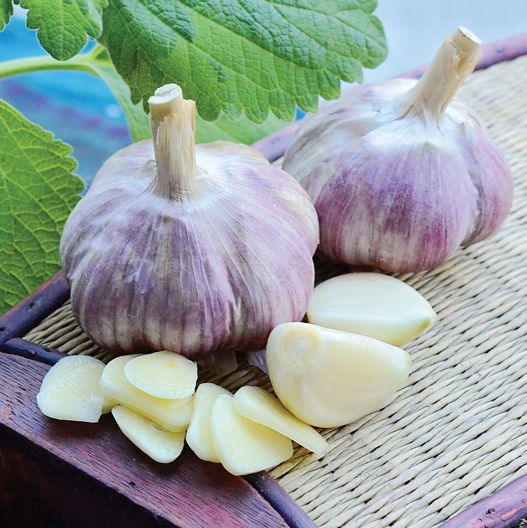 Mid-season, Purple Stripe type. A top-notch producer in cold climates, Siberian deserves consideration for all northern gardeners. The cloves are protected by an attractive light pink skin that becomes even redder when grown in high-iron soils. This clean, medium-to-strong flavored garlic will warm your soul on the coldest winter evening. Best of all, it is purported to have high allicin content, possibly the highest of any garlic. Allicin supports normal cholesterol levels, boosts the immune system, and enhances circulation.