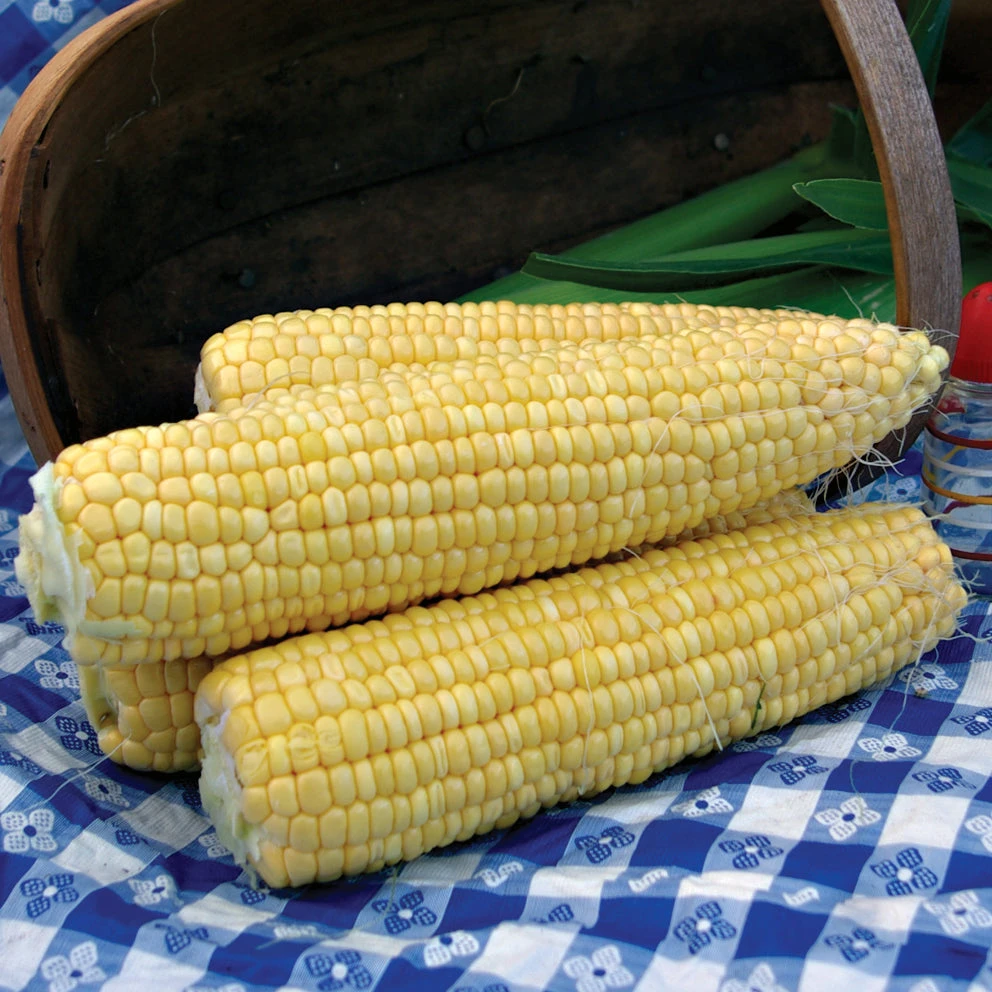 85 days. An sh2 type that combines the ear shape and eating quality of Golden Jubilee with the extra sweetness of a Supersweet. Eight foot plants yield 8-9 inch ears filled with sweet yellow kernels. Holds its quality well on and off the plant. Often said to be the best-tasting Supersweet available. HR: R. IR: SCLB