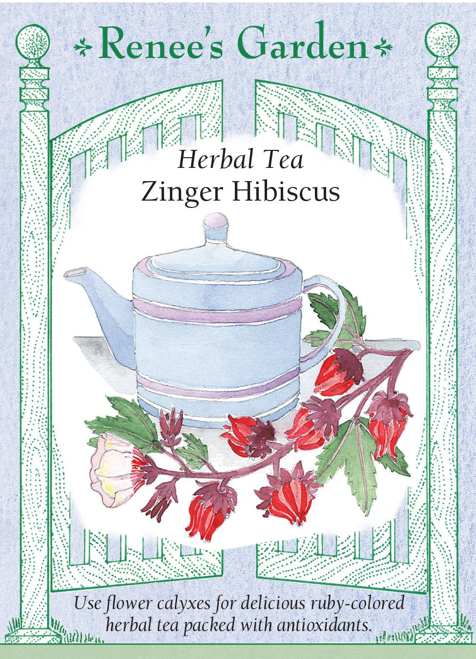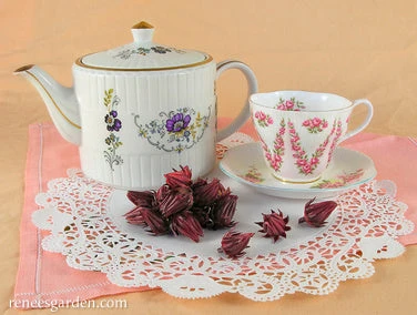 This special herbal tea plant has attractive lobed leaves and creamy flowers. Once the pretty blossoms are spent, just pick and air dry the teardrop-shaped flower calyxes to make a delicious ruby-colored tea with a floral, berry aroma and well balanced, cranberry-like flavor. Antioxidant packed Hibiscus tea is delicious on its own either steaming hot or iced, or add a touch of lemon, a little honey, or your favorite fruit juice. Also called Jamaican tea or Roselle.