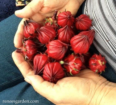 After flowers have finished blooming, harvest the deep-red, teardrop-shaped, calyxes at the base of each blossom. Snap off calyxes that are ready, removing spent flower if still attached Use fresh, or air-dry for longer storage.